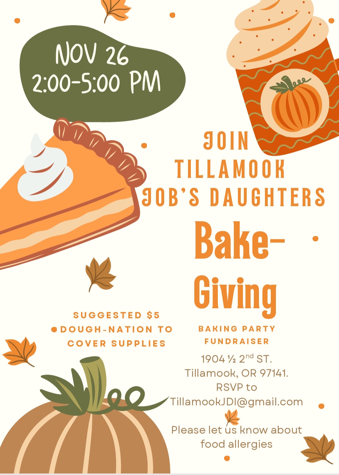 Come join Job’s Daughters bethel 17 as we teach and  learn to bake several take home treats. Suggested donation of $5