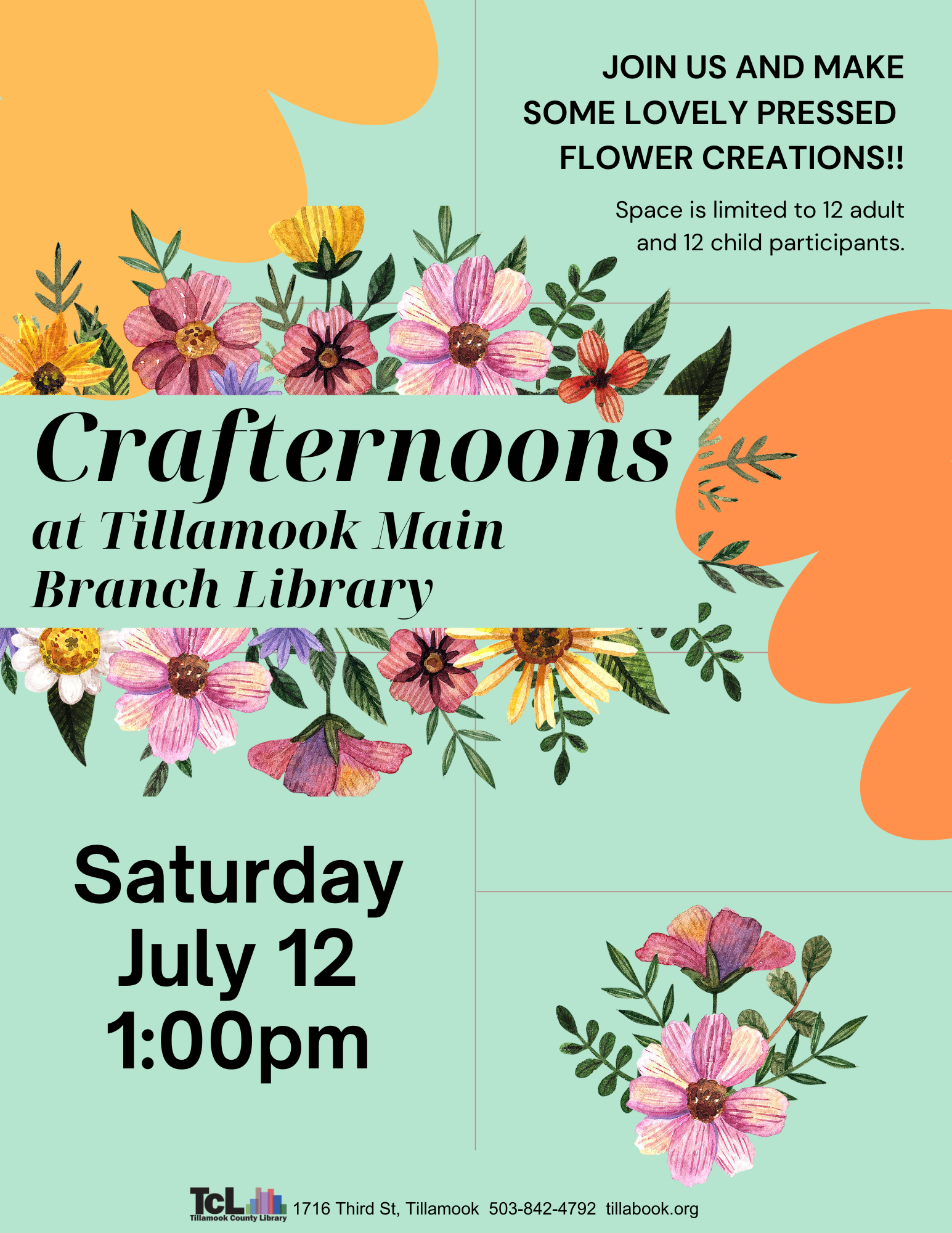 Make pressed flower creations at the library on Saturday July 12th at 1 pm!