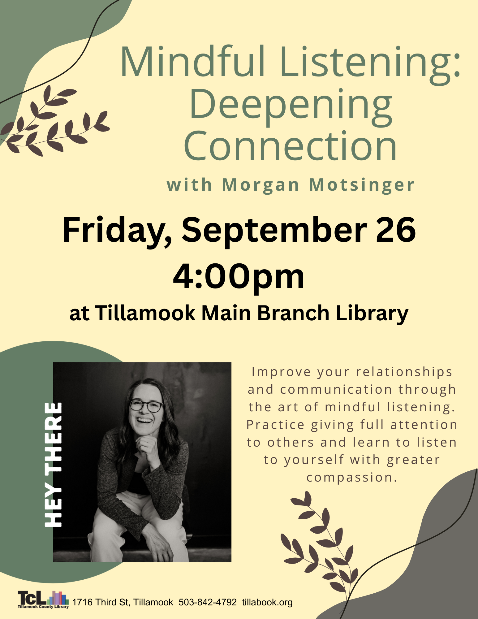 Mindful Listening with Morgan Motsinger at Tillamook Library
