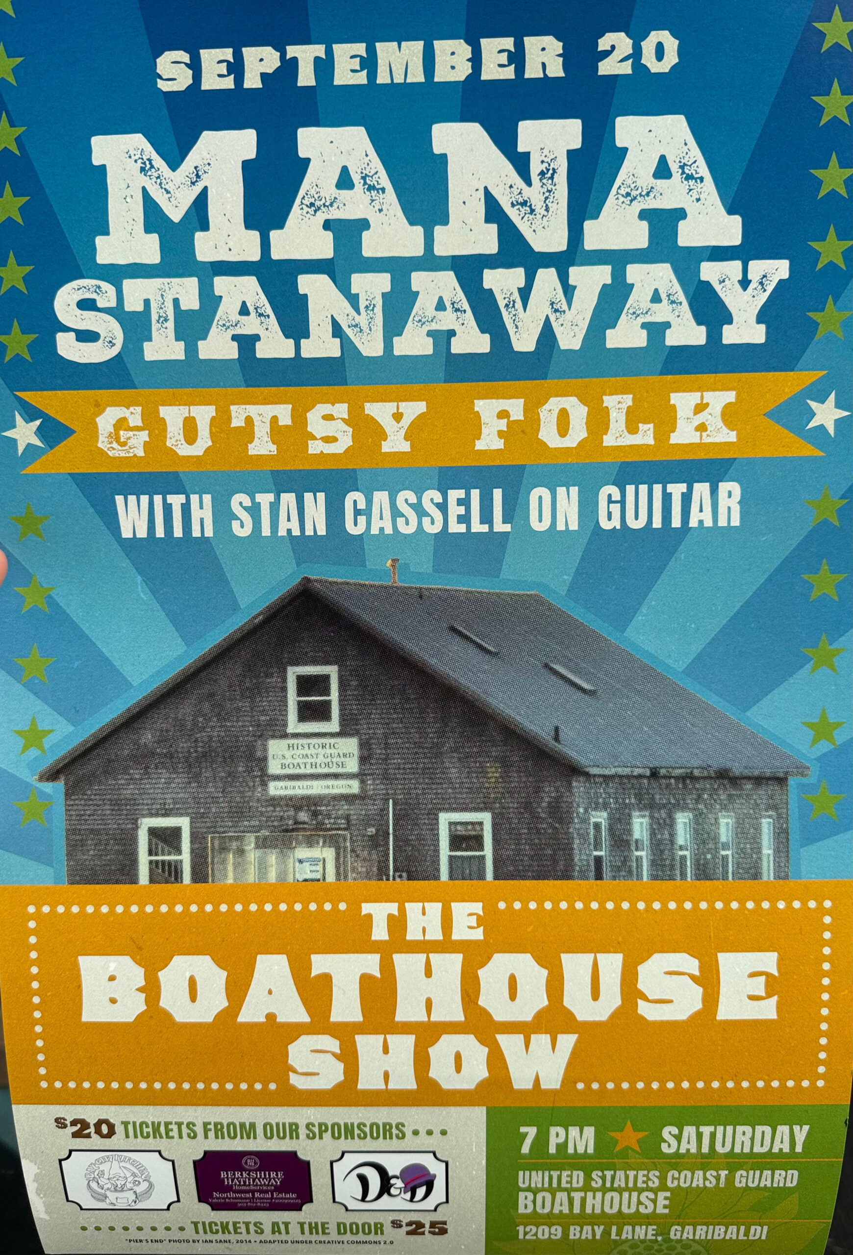 Sept. 20th, beginning at 7:00 pm at the Boathouse in Garibaldi