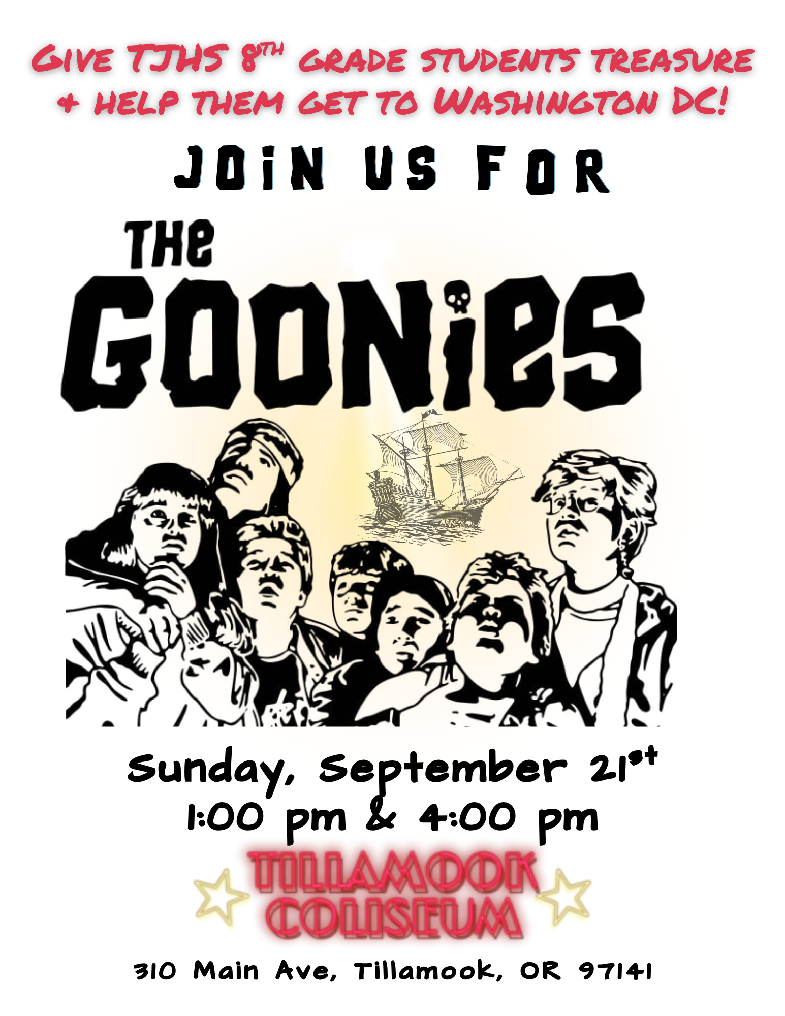 Grab your friends and family for a special big-screen showing of the beloved classic The Goonies, filmed right here on the Oregon Coast!